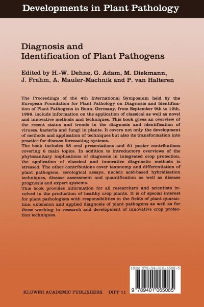 The diagnosis and identification of plant pathogens provides the basis of plant pathology and phytomedicine. The Executive Committee of the EUROPEAN FOUNDATION FOR PLANT PATHOLOGY (EFPP) had no problem to identify this actual th topic as topic for the 4th Symposium, which was held from September 8 to the 12th at the University of Bonn. It was suggested to have introductory papers and papers on actual research on recently identified topics. The development of diagnosis and pathogen identification is very important to keep plants healthy and to provide a successful and efficient disease control. On the other hand the most important task of the EUROPEAN FOUNDATION FOR PLANT PATHOLOGY is to improve the international communication, especially in the European hemisphere. Another important duty is to provide the contact between all associated societies - of specific importance seems to be the contact to societies and colleagues from eastern European countries. Times have changed and gratefully we are obliged to hold the contact to our colleagues from the east. During the last meeting we could hold this contact to a certain extent and this should be a premise for the future. th During 1998 the EUROPEAN FOUNDATION FOR PLANT PATHOLOGY will join the 7 International Congress of Plant Pathology held at Edinburgh from August 9-14, 1998. th The 5 Symposium of the EUROPEAN FOUNDATION FOR PLANT PATHOLOGY will be arranged by our Italian colleagues.