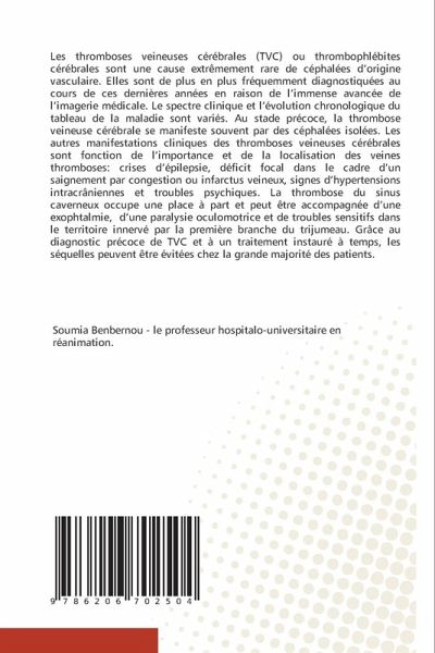 Les thromboses veineuses cérébrales (TVC) ou thrombophlébites cérébrales sont une cause extrêmement rare de céphalées d'origine vasculaire. Elles sont de plus en plus fréquemment diagnostiquées au cours de ces dernières années en raison de l'immense avancée de l'imagerie médicale. Le spectre clinique et l'évolution chronologique du tableau de la maladie sont variés. Au stade précoce, la thrombose veineuse cérébrale se manifeste souvent par des céphalées isolées. Les autres manifestations cliniques des thromboses veineuses cérébrales sont fonction de l'importance et de la localisation des veines thromboses: crises d'épilepsie, déficit focal dans le cadre d'un saignement par congestion ou infarctus veineux, signes d'hypertensions intracrâniennes et troubles psychiques. La thrombose du sinus caverneux occupe une place à part et peut être accompagnée d'une exophtalmie, d'une paralysie oculomotrice et de troubles sensitifs dans le territoire innervé par la première branche du trijumeau. Grâce au diagnostic précoce de TVC et à un traitement instauré à temps, les séquelles peuvent être évitées chez la grande majorité des patients.