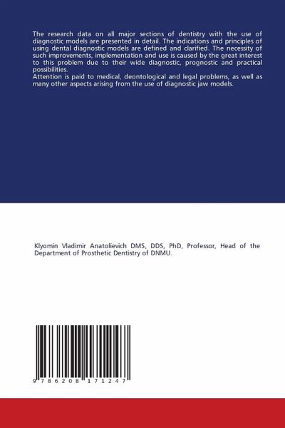 The research data on all major sections of dentistry with the use of diagnostic models are presented in detail. The indications and principles of using dental diagnostic models are defined and clarified. The necessity of such improvements, implementation and use is caused by the great interest to this problem due to their wide diagnostic, prognostic and practical possibilities.Attention is paid to medical, deontological and legal problems, as well as many other aspects arising from the use of diagnostic jaw models.