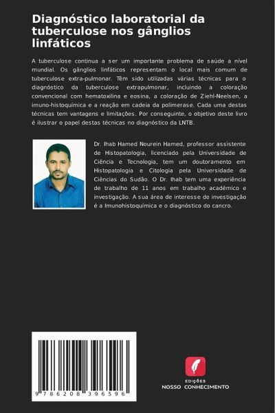 A tuberculose continua a ser um importante problema de saúde a nível mundial. Os gânglios linfáticos representam o local mais comum de tuberculose extra-pulmonar. Têm sido utilizadas várias técnicas para o diagnóstico da tuberculose extrapulmonar, incluindo a coloração convencional com hematoxilina e eosina, a coloração de Ziehl-Neelsen, a imuno-histoquímica e a reação em cadeia da polimerase. Cada uma destas técnicas tem vantagens e limitações. Por conseguinte, o objetivo deste livro é ilustrar o papel destas técnicas no diagnóstico da LNTB.