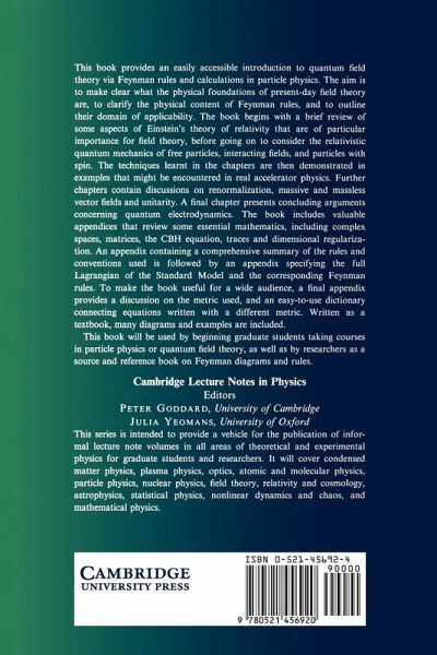 This book provides an easily accessible introduction to quantum field theory via Feynman rules and calculations in particle physics. the aim is to make clear what the physical foundations of present-day field theory are, to clarify the physical content of Feynman rules, and to outline their domain of applicability. The book begins with a brief review of some aspects of Einstein's theory of relativity that are of particular importance for field theory, before going on to consider the relativistic quantum mechanics of free particles, interacting fields, and particles with spin.