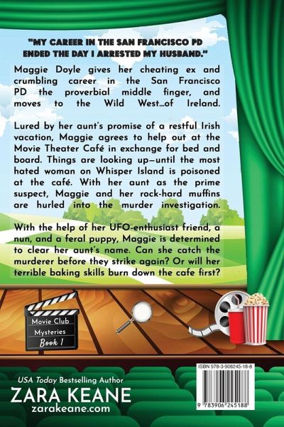 "My career in the San Francisco PD ended the day I arrested my husband." Maggie Doyle gives her cheating ex and crumbling career in the San Francisco PD the proverbial middle finger, and moves to the Wild West...of Ireland. Lured by her aunt's promise of a restful Irish vacation, Maggie agrees to help out at the Movie Theater Café in exchange for bed and board. Things are looking up-until the most hated woman on Whisper Island is poisoned at the café. With her aunt as the prime suspect, Maggie and her rock-hard muffins are hurled into the murder investigation. With the help of her UFO-enthusiast friend, a nun, and a feral puppy, Maggie is determined to clear her aunt's name. Can she catch the murderer before they strike again? Or will her terrible baking skills burn down the cafe first?