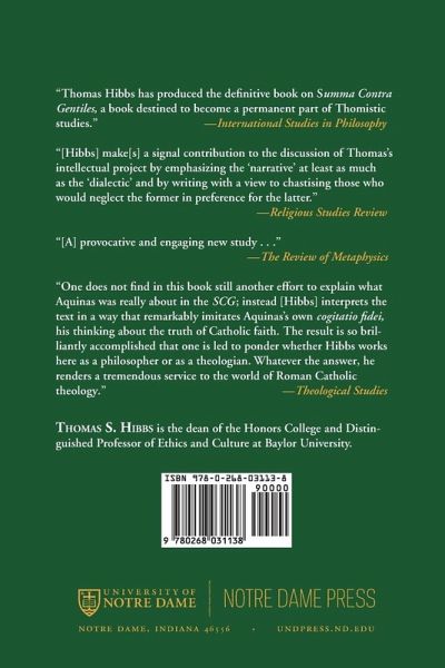 Dialectic and Narrative in Aquinas investigates the intent, method, and structural unity of Thomas Aquinas's Summa Contra Gentiles. In this innovative study Thomas S. Hibbs goes against the grain of most traditional interpretations of the work, which claim it serves a missionary or apologetic end, and argues that the intended audience is Christian and that its subject is Christian wisdom. In the process of making his argument, Hibbs also demonstrates that the Summa Contra Gentiles is the most important of Aquinas's texts on the relationship between faith and reason, theology, and philosophy. Since the prologue to the Summa Contra Gentiles has been the focus of nearly all the debates over the work, Hibbs begins with an examination of it and the controversies it has provoked, and tests various interpretations of the prologue in light of the actual text. He then goes on to suggest that the method of the Contra Gentiles is dialectical and that its unifying principle is provided by the narrative structure of scripture. The next chapters are devoted to each of the Contra Gentiles' four ports and Hibbs argues that any interpretation of the first three books must consider how the order of Aquinas's discussion is driven by a series of dialectical encounters with received opinions, especially those of Aristotle and his commentators. Hibbs further demonstrates how attention to the dialectical method of the work has two advantages: first, it enables readers to avoid misinterpretations of Aquinas's positions on various issues, and second, it allows the reader to recapture something of Aquinas's original pedagogical intent. Dialectic and Narrative in Aquinas also reveals how the dialectical method of the Contra Gentiles is crucial to Aquinas's project of subordinating philosophy to theology, and in the concluding chapter Hibbs considers in detail the narrative unity of the Contra Gentiles and brings themes from Aquinas into conversation with contemporary work in genre theory.