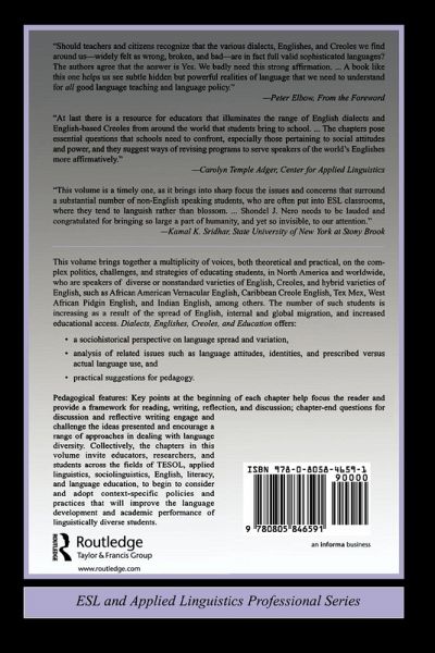 This volume brings together a multiplicity of voices--both theoretical and practical--on the complex politics, challenges, and strategies of educating students--in North America and worldwide--who are speakers of diverse or nonstandard varieties of English, creoles, and hybrid varieties of English, such as African American Vernacular English, Caribbean Creole English, Tex Mex, West African Pidgin English, and Indian English, among others. The number of such students is increasing as a result of the spread of English, internal and global migration, and increased educational access. Dialects, Englishes, Creoles, and Education offers: *a sociohistorical perspective on language spread and variation; *analysis of related issues such as language attitudes, identities, and prescribed versus actual language use; and *practical suggestions for pedagogy. Pedagogical features: Key points at the beginning of each chapter help focus the reader and provide a framework for reading, writing, reflection, and discussion; chapter-end questions for discussion and reflective writing engage and challenge the ideas presented and encourage a range of approaches in dealing with language diversity. Collectively, the chapters in this volume invite educators, researchers, and students, across the fields of TESOL, applied linguistics, sociolinguistics, English, literacy, and language education, to begin to consider and adopt context-specific policies and practices that will improve the language development and academic performance of linguistically diverse students.