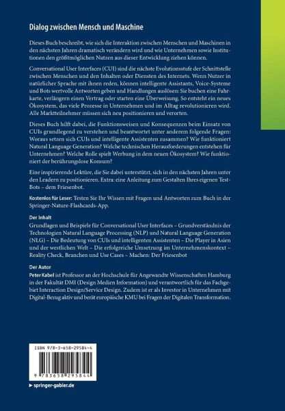 Dieses Buch beschreibt, wie sich die Interaktion zwischen Menschen und Maschinen in den nächsten Jahren dramatisch verändern wird und wie Unternehmen sowie Institutionen den größtmöglichen Nutzen aus dieser Entwicklung ziehen können.Conversational User Interfaces (CUI) sind die nächste Evolutionsstufe der Schnittstelle zwischen Menschen und den Inhalten oder Diensten des Internets. Wenn Nutzer in natürlicher Sprache mit ihnen reden, können intelligente Assistants, Voice-Systeme und Bots wertvolle Antworten geben und Handlungen auslösen: Sie buchen eine Fahrkarte, verlängern einen Vertrag oder starten eine Überweisung. So entsteht ein neues Ökosystem, das viele Prozesse in Unternehmen und im Alltag revolutionieren wird. Alle Marktteilnehmer müssen sich neu positionieren und verorten.Dieses Buch hilft dabei, die Funktionsweisen und Konsequenzen beim Einsatz von CUIs grundlegend zu verstehen und beantwortet unter anderem folgende Fragen: Woraus setzen sich CUIs und intelligente Assistenten zusammen? Wie funktioniert Natural Language Generation? Welche technischen Herausforderungen entstehen für Unternehmen? Welche Rolle spielt Werbung in dem neuen Ökosystem? Wie funktioniertder berührungslose Konsum? Eine inspirierende Lektüre, die Sie dabei unterstützt, sich in den nächsten Jahren unter den Leadern zu positionieren. Extra: eine Anleitung zum Gestalten Ihres eigenen Test-Bots - dem Friesenbot. Kostenlos für Leser: Testen Sie Ihr Wissen mit Fragen und Antworten zum Buch in der Springer-Nature-Flashcards-App.