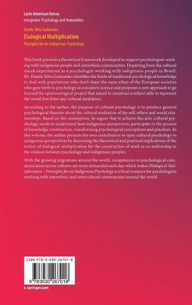 According to the author, the purpose of cultural psychology is to produce general psychological theories about the cultural mediation of the self, others and world relationships. Based on this assumption, he argues that to achieve this aim, cultural psychology needs to understand how indigenous perspectives participate in the process of knowledge construction, transforming psychological conceptions and practices. In this volume, the author presents his own contribution to open cultural psychology to indigenous perspectives by discussing the theoretical and practical implications of the notion of dialogical multiplication for the construction of work in co-authorship in the relation between psychology and indigenous peoples.