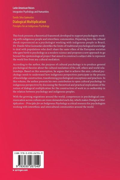 According to the author, the purpose of cultural psychology is to produce general psychological theories about the cultural mediation of the self, others and world relationships. Based on this assumption, he argues that to achieve this aim, cultural psychology needs to understand how indigenous perspectives participate in the process of knowledge construction, transforming psychological conceptions and practices. In this volume, the author presents his own contribution to open cultural psychology to indigenous perspectives by discussing the theoretical and practical implications of the notion of dialogical multiplication for the construction of work in co-authorship in the relation between psychology and indigenous peoples.