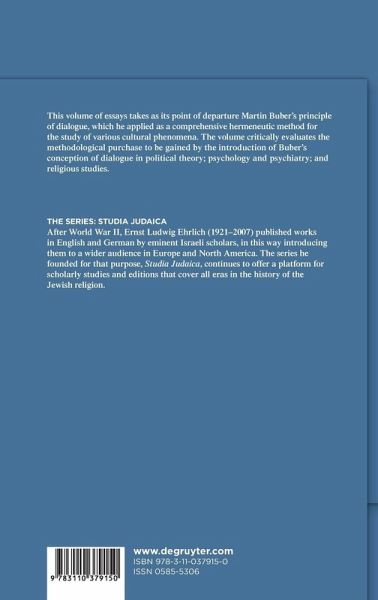 This volume of essays constitutes a critical evaluation of Martin Buber's concept of dialogue as a trans-disciplinary hermeneutic method. So conceived, dialogue has two distinct but ultimately convergent vectors. The first is directed to the subject of one's investigation: one is to listen to the voice of the Other and to suspend all predetermined categories and notions that one may have of the Other; dialogue is, first and foremost, the art of unmediated listening. One must allow the voice of the Other to question one's pre-established positions fortified by professional, emotional, intellectual and ideological commitments. Dialogue is also to be conducted between various disciplinary perspectives despite the regnant tendency to academic specialization. In recent decades' an increasing number of scholars have come to share Buber's position to foster cross-disciplinary conversation, if but to garner, as Max Weber aruged, "useful questions upon which he would not so easily hitupon from his own specialized point of view." Accordingly, the objective of this volume is to explore the reception of Buber's philosophy of dialogue in some of the disciplines that fell within the purview of his own writings: Anthropology, Hasidism, Religious Studies, Psychology and Psychiatry.