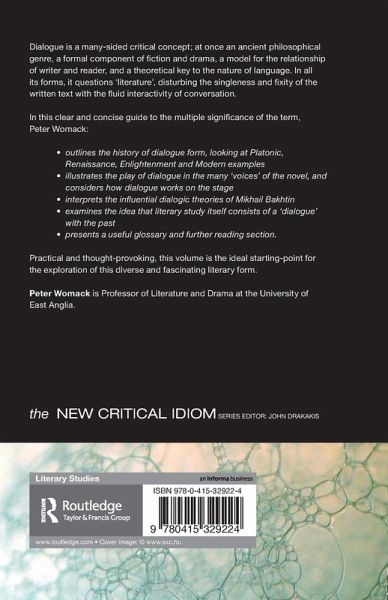 outlines the history of dialogue form, looking at Platonic, Renaissance, Enlightenment and Modern examples illustrates the play of dialogue in the many 'voices' of the novel, and considers how dialogue works on the stageinterprets the influential dialogic theories of Mikhail Bakhtinexamines the idea that literary study itself consists of a 'dialogue' with the pastpresents a useful glossary and further reading section.
