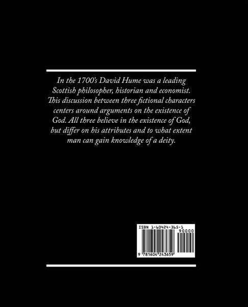 In the 1700's David Hume was a leading Scottish philosopher, historian and economist. This discussion between three fictional characters centers around arguments on the existence of God. All three believe in the existence of God, but differ on his attributes and to what extent man can gain knowledge of a deity.