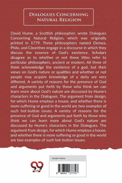 David Hume, a Scottish philosopher, wrote Dialogues Concerning Natural Religion, which was originally printed in 1779. Three philosophers named Demea, Philo, and Cleanthes engage in a discourse in which they discuss the essence of God's existence. Scholars disagree as to whether or not these titles refer to particular philosophers, ancient or modern. All three of them acknowledge the existence of a god, but their views on God's nature or qualities and whether or not people may acquire knowledge of a deity are very different. A variety of reasons for the presence of God and arguments put forth…mehr