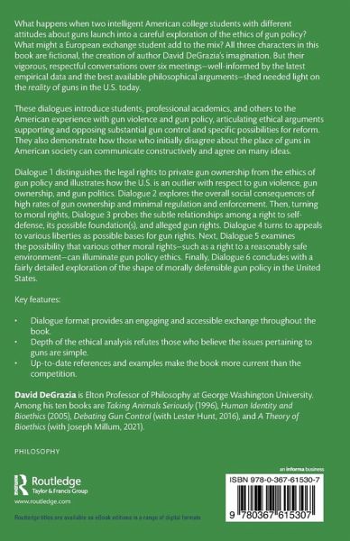 What happens when two intelligent American college students with different attitudes about guns launch into a careful exploration of the ethics of gun policy? What might a European exchange student add to the mix? All three characters in this book are fictional, the creation of author David DeGrazia's imagination. But their vigorous, respectful conversations over six meetings-well-informed by the latest empirical data and the best available philosophical arguments-shed needed light on the reality of guns in the U.S. today.