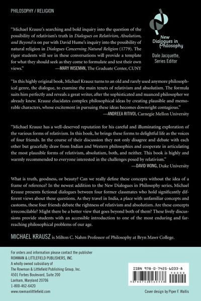 What is truth, goodness, or beauty? Can we really define these concepts without the idea of a frame of reference? In the newest addition to the New Dialogues in Philosophy series, Michael Krausz presents fictional dialogues between four former classmates who hold significantly different views about these questions. As they travel in India, a place with unfamiliar concepts and customs, these four friends debate the rightness of relativism and absolutism. Are these concepts irreconcilable? Might there be a better view that goes beyond both of them? These lively discussions provide students with an accessible introduction to one of the most enduring and far-reaching philosophical problems of our age.