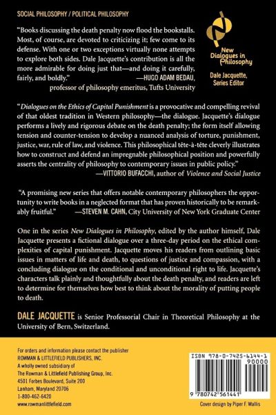 One in the series New Dialogues in Philosophy, edited by the author himself, Dale Jacquette presents a fictional dialogue over a three-day period on the ethical complexities of capital punishment. Jacquette moves his readers from outlining basic issues in matters of life and death, to questions of justice and compassion, with a concluding dialogue on the conditional and unconditional right to life. Jacquette's characters talk plainly and thoughtfully about the death penalty, and readers are left to determine for themselves how best to think about the morality of putting people to death.