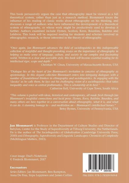 Ethnography must be seen as a full theoretical system, not just as a method. In this book, a range of authors are examined, whose work was either instrumental in creating this theoretical system, or might productively be used in developing it further. Authors discussed include Hymes, Scollon, Kress, Bourdieu, Bakhtin and Lefebvre.