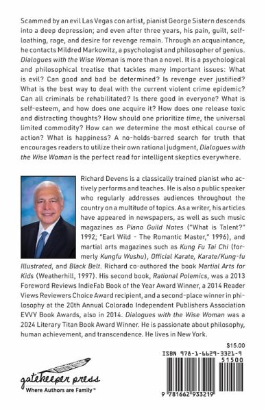 Richard Devens is a classically trained pianist who actively performs and teaches. He is also a public speaker who regularly addresses audiences throughout the country on a multitude of topics. As a writer, his articles have appeared in newspapers, as well as such music magazines as Piano Guild Notes ("What is Talent?" 1992; "Earl Wild - The Romantic Master," 1996), and martial arts magazines such as Kung Fu Tai Chi (formerly Kungfu Wushu), Official Karate, Karate/Kung-fu Illustrated, and Black Belt. Richard co-authored the book Martial Arts for Kids (Weatherhill, 1997). His second book, Rational Polemics, was a 2013 Foreword Reviews IndieFab Book of the Year Award Winner, a 2014 Reader Views Reviewers Choice Award recipient, and a second-place winner in Philosophy at the 20th Annual Colorado Independent Publishers Association EVVY Book Awards, also in 2014. Dialogues with the Wise Woman was a 2024 Literary Titan Gold Book Award Winner and a first-place winner in Philosophy at the 2024 Pacific Book Awards. He is passionate about philosophy, human achievement, and transcendence. He lives in New York.