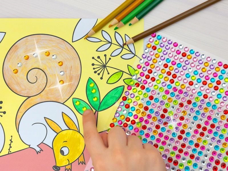 In diesem Ausmalbuch kannst du die vielen unterschiedlichen Tiere kunterbunt anmalen und ihnen anschließend mit den über 900 Glitzersteinen das ganz besondere Etwas verleihen!