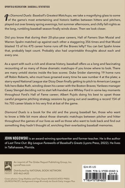In Diamond Duels: Baseball’s Greatest Matchups, we take a magnifying glass to some of the game’s most entertaining and historic battles between hitters and pitchers, played out over breezy spring evenings, hot summer afternoons, and chilly fall evenings as the long, rumbling baseball season finally winds down. Then we look closer. As a sport with such a rich and diverse history, baseball offers us a long and fascinating recounting of so many of those dramatic matchups— if you know where to look. There are many untold stories inside the box scores; Duke Snider slamming 19 home runs off Robin Roberts, who must have groaned every time he saw No. 4 at the plate; a starry-eyed National League star Dizzy Dean finally getting to pitch to American League folk hero Babe Ruth, winding down his career with the Boston Braves; Yankees manager Casey Stengel deciding not to start left-handed ace Whitey Ford in some key moments throughout Ford’s Hall of Fame career; Albert Pujols doing his best to upset those careful pregame pitching strategy sessions by going out and swatting a record 154 of his 703 career blasts in his very first at-bat of the game. Diamond Duels is a book for the old and the young baseball fan, those who want to know just a little bit more about those dramatic matchups between pitcher and hitter throughout the games of our lives as well as those who want to look back, find out something they hadn’t thought of, enriching their everlasting baseball memories.