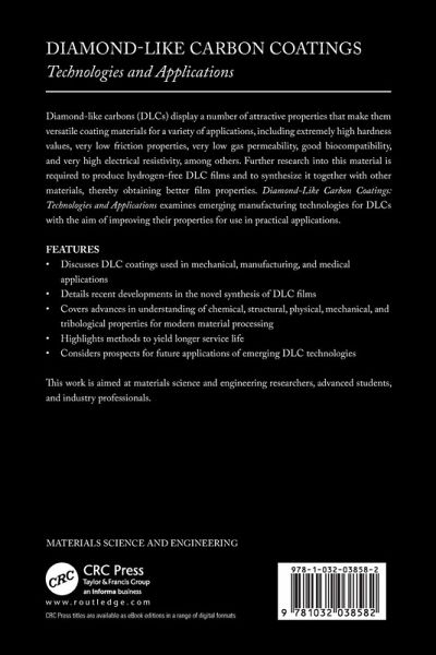 1. Novel DLC Coating. 2. Synthesis of Novel DLC Films. 3. Recent Advances in Hardmetal Thin Films and Diamond-Like Carbon Coatings for Friction Stir Welding Tools. 4. The Optical Applications of Diamond-Like Carbon Films. 5. Wear-Resistant Coatings for Extrusion Dies. 6. DLC Technologies in Sustainable/Circular Society. 7. Application of DLC Coatings in Metal Forming. 8. Engine Tribology: Enhancing Energy Efficiency for Cleaner Environment. 9. Mechanical and Tribological Performance of Diamond-Like Carbon Coatings: An Overview. 10. DLC Coating in Cutting Tools. 11. Tribological Applications of Emerging DLC Technologies: Recent and Future Prospects.