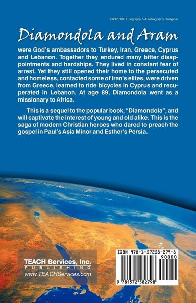 Diamondola and Aram were God's ambassadors to Turkey, Iran, Greece, Cyprus and Lebanon. Together they endured many bitter disappointments and hardships. They lived in constant fear of arrest. Yet they still opened their home to the persecuted and homeless, contacted some of Iran's elites, were driven from Greece, learned to ride bicycles in Cyprus and recuperated in Lebanon. At age 89, Diamondola went as a missionary to Africa.