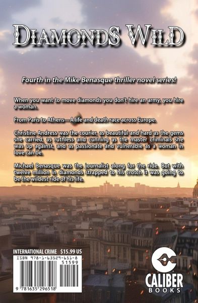 The fourth in the Mike Benasque thriller novel series! When you want to move diamonds you don't hire an army, you hire a woman. From Paris to Athens-A life and death race across Europe. Christine Andress was the courier, as beautiful and hard as the gems she carried, as ruthless and cunning as the master criminals she was up against, and as passionate and vulnerable as a woman in love can be. Michael Benasque was the journalist along for the ride. But with twelve million in diamonds strapped to his crotch it was going to be the wildest ride of his life.