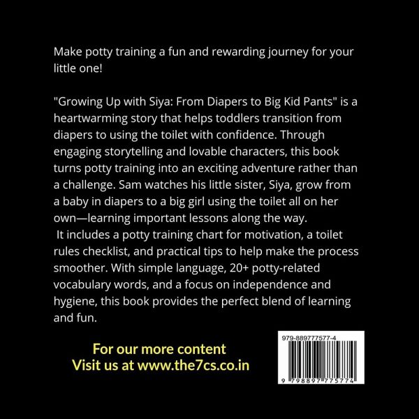 " From Diapers to Big Kid Pants" is a heartwarming story that turns potty training into an exciting adventure! Join Sam as he watches his little sister, Siya, grow from diapers to using the big kid toilet. Through simple storytelling, valuable lessons, and engaging activities, this book helps parents and toddlers navigate potty training with confidence. Featuring: ✅ A fun and relatable story ✅ Hidden values & vocabulary-building words ✅ Tips to make potty training stress-free ✅ A potty training chart & toilet rules for kids Make potty training a joyful milestone for your child!