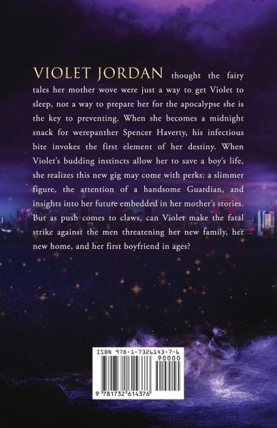 Violet Jordan thought the fairy tales her mother wove were just a way to get Violet to sleep, not a way to prepare her for the apocalypse she is the key to preventing. When she becomes a midnight snack for werepanther Spencer Haverty, his infectious bite invokes the first element of her destiny. When Violet's budding instincts allow her to save a boy's life, she realizes this new gig may come with perks: a slimmer figure, the attention of a handsome Guardian, and insights into her future embedded in her mother's stories. But as push comes to claws, can Violet make the fatal strike against the men threatening her new family, her new home and her first boyfriend in ages?