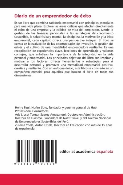 Es un libro que combina sabiduría empresarial con principios esenciales para una vida plena. Explore las áreas críticas que afectan directamente el éxito de una empresa y la calidad de vida del empleador. Desde la gestión de las finanzas personales a las estrategias de crecimiento sostenible, la salud física y mental, la disciplina, la motivación y la ética empresarial, cada capítulo ofrece una perspectiva integral. El libro se centra en la evaluación de las oportunidades de inversión, la gestión del estrés y el cultivo de una mentalidad emprendedora resiliente. Es una recopilación de experiencias clave, lecciones de aprendizaje y valiosos consejos, que enfatizan la importancia de la integridad en la vida personal y empresarial. Los principales objetivos del libro son inspirar y motivar a los lectores, ofrecer herramientas y estrategias para el desarrollo personal y promover una mentalidad empresarial positiva, creativa y resiliente. Con un enfoque único, este libro se convierte en un compañero esencial para aquellos que buscan el éxito en todas sus dimensiones.