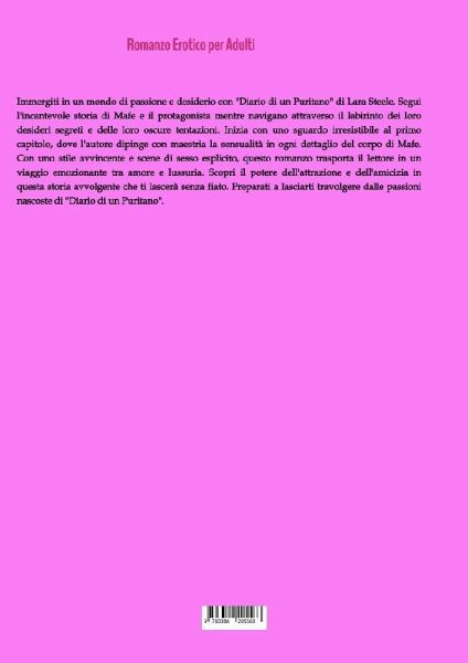 Immergiti in un mondo di passione e desiderio con "Diario di un Puritano" di Lara Steele. Segui l'incantevole storia di Mafe e il protagonista mentre navigano attraverso il labirinto dei loro desideri segreti e delle loro oscure tentazioni. Inizia con uno sguardo irresistibile al primo capitolo, dove l'autore dipinge con maestria la sensualità in ogni dettaglio del corpo di Mafe. Con uno stile avvincente e scene di sesso esplicito, questo romanzo trasporta il lettore in un viaggio emozionante tra amore e lussuria. Scopri il potere dell'attrazione e dell'amicizia in questa storia avvolgente che ti lascerà senza fiato. Preparati a lasciarti travolgere dalle passioni nascoste di "Diario di un Puritano".