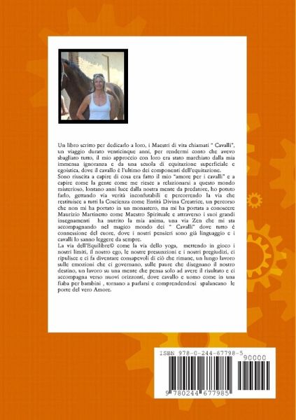 Un libro scritto per dedicarlo a loro, i Maestri di vita chiamati " Cavalli", un viaggio durato venticinque anni, per rendermi conto che avevo sbagliato tutto, il mio approccio con loro era stato marchiato dalla mia immensa ignoranza e da una scuola di equitazione superficiale e egoistica, dove il cavallo è l'ultimo dei componenti dell'equitazione. Sono riuscita a capire di cosa era fatto il mio "amore per i cavalli" e a capire come la gente come me riesce a relazionarsi a questo mondo misterioso, lontano anni luce dalla nostra mente da predatore, ho potuto farlo, gettando via verità inconfutabili e percorrendo la via che restituisce a tutti la Coscienza come Entità Divina Creatrice, un percorso che non mi ha portato in un monastero, ma mi ha portata a conoscere Maurizio Martinetto