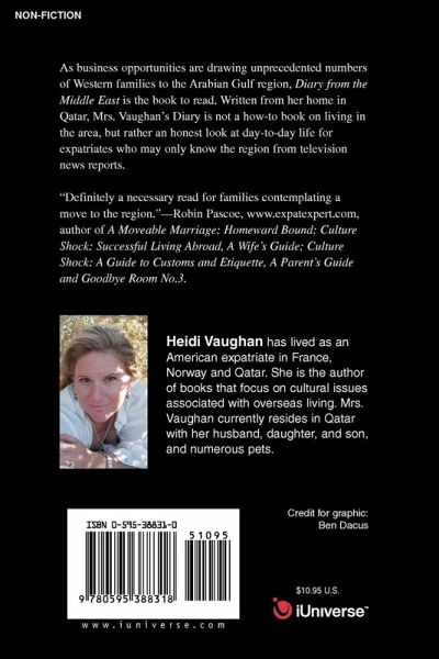 As business opportunities are drawing unprecedented numbers of Western families to the Arabian Gulf region, Diary from the Middle East is the book to read. Written from her home in Qatar, Mrs. Vaughan's Diary is not a how-to book on living in the area, but rather an honest look at day-to-day life for expatriates who may only know the region from television news reports. 'Definitely a necessary read for families contemplating a move to the region."-Robin Pascoe, www.expatexpert.com, author of A Moveable Marriage; Homeward Bound; Culture Shock: Successful Living Abroad, A Wife's Guide; Culture Shock: A Guide to Customs and Etiquette, A Parent's Guide and Goodbye Room No.3.