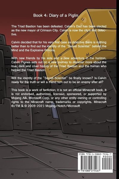 The Triad Bastion has been defeated. Calvin's Dad has been elected as the new mayor of Crimson City. Calvin is now the city's first detective. Calvin decided that for his very first case as detective there is nothing better than to find out the identity of the "Secret Scientist" behind the Mind and the Explosive Potions. With new friends by his side and a new adventure in the horizon, Calvin Pignes sets out on a new journey to discover more about the true, dark and cruel history of the Triad Bastion and the human who helped the Triad Bastion. Will the identity of the "Secret Scientist" be finally known? Is Calvin ready for the truth or will a friend turn out to be an enemy after all? Disclaimer: This book is a work of fanfiction; it is not an official Minecraft book. It is not endorsed, authorized, licensed, sponsored, or supported by Mojang AB, Microsoft Corp. or any other entity owning or controlling rights to the Minecraft name, trademarks or copyrights. Minecraft ®/TM & (c) 2009-2023 Mojang/Notch/Microsoft