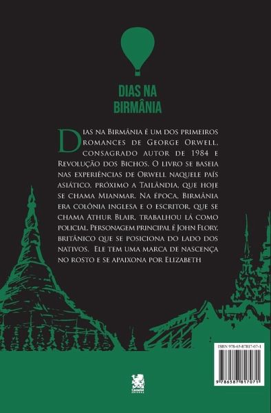Dias na Birmânia é um dos primeiros romances de George Orwell, consagrado autor de 1984 e revolução dos Bichos. O livro se baseia nas experiências de Orwell naquele país asiático, próximo à Tailândia. Que hoje se chama Mianmar. Na época era colônia inglesa e o escritor, que se chama Arthur Blair, trabalhou lá como policial. Personagem principal é John Flory, britânico que se posiciona do lado dos nativos. Ele tem uma marca de nascença no rosto e se apaixona por Elizabeth.