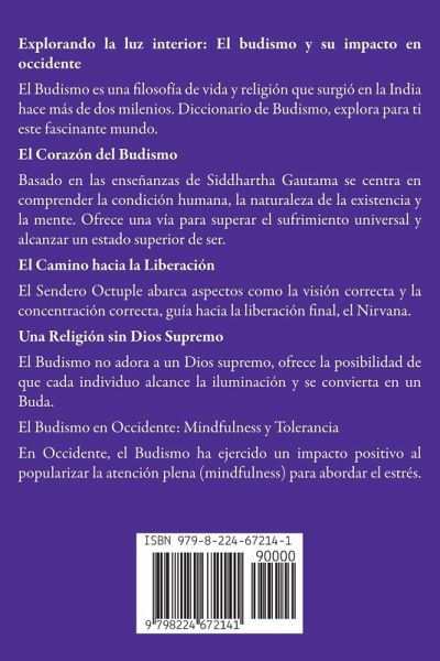 Explorando la luz interior: El budismo y su impacto en occidente El Budismo es una filosofía de vida y religión que surgió en la India hace más de dos milenios. Diccionario de Budismo, explora para ti este fascinante mundo. El Corazón del Budismo Basado en las enseñanzas de Siddhartha Gautama se centra en comprender la condición humana, la naturaleza de la existencia y la mente. Ofrece una vía para superar el sufrimiento universal y alcanzar un estado superior de ser. El Camino hacia la Liberación El Sendero Octuple abarca aspectos como la visión correcta y la concentración correcta, guía hacia la liberación final, el Nirvana. Una Religión sin Dios Supremo El Budismo no adora a un Dios supremo, ofrece la posibilidad de que cada individuo alcance la iluminación y se convierta en un Buda. El Budismo en Occidente: Mindfulness y Tolerancia En Occidente, el Budismo ha ejercido un impacto positivo al popularizar la atención plena (mindfulness) para abordar el estrés.