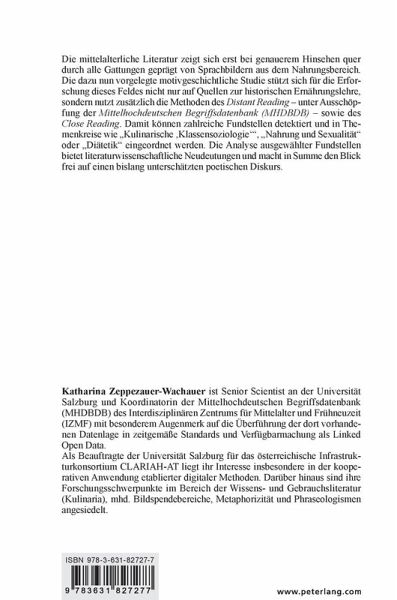 Die mittelalterliche Literatur zeigt sich erst bei genauerem Hinsehen quer durch alle Gattungen geprägt von Sprachbildern aus dem Nahrungsbereich. Die dazu nun vorgelegte motivgeschichtliche Studie stützt sich für die Erforschung dieses Feldes nicht nur auf Quellen zur historischen Ernährungslehre, sondern nutzt zusätzlich die Methoden des Distant Reading - unter Ausschöpfung der Mittelhochdeutschen Begriffsdatenbank (MHDBDB) - sowie des Close Reading. Damit können zahlreiche Fundstellen detektiert und in Themenkreise wie "Kulinarische 'Klassensoziologie'", "Nahrung und Sexualität" oder "Diätetik" eingeordnet werden. Die Analyse ausgewählter Fundstellen bietet literaturwissenschaftliche Neudeutungen und macht in Summe den Blick frei auf einen bislang unterschätzten poetischen Diskurs.
