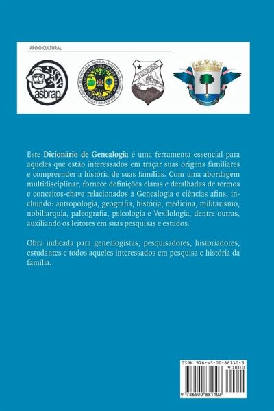 Este Dicion rio de Genealogia, de autoria do advogado e genealogista capixaba, Gilber Rubim Rangel, com 420 p ginas, cont m 3500 verbetes e mais de 10