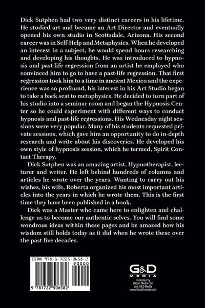 Dick Sutphen had two very distinct careers in his lifetime. He studied art and became an Art Director and eventually opened his own studio in Scottsdale, Arizona. His second career was in Self-Help and Metaphysics. When he developed an interest in a subject, he would spend hours researching and developing his thoughts. He was introduced to hypnosis and past-life regression from an artist he employed who convinced him to go to have a past-life regression. That first regression took him to a time in ancient Mexico and the experience was so profound, his interest in his Art Studio began to take a back seat to metaphysics. He decided to turn part of his studio into a seminar room and began the Hypnosis Center so he could experiment with different ways to conduct hypnosis and past-life regressions. His Wednesday night sessions were very popular. Many of his students requested private sessions, which gave him an opportunity to do in-depth research and write about his discoveries. He developed his own style of hypnosis session, which he termed, Spirit Contact Therapy. Dick Sutphen was an amazing artist, Hypnotherapist, lecturer and writer. He left behind hundreds of columns and articles he wrote over the years. Wanting to carry out his wishes, his wife, Roberta organized his most important articles into the years in which he wrote them. This is the first time they have been published in a book. Dick was a Master who came here to enlighten and challenge us to become our authentic selves. You will find some wondrous ideas within these pages and be amazed how his wisdom still holds today as it did when he wrote these over the past five decades.