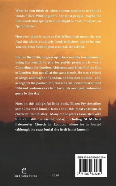 What do you think of when anyone mentions to you the words "Dick Whittington"? For most people, maybe the first words that spring to mind might be "cat", "mayor", or "pantomime" ... However, there is more to this fellow than meets the eye. You see, Dick Whittington was real. He existed. Born in the 1350s, he grew up to be a wealthy businessman, using his wealth to pay for public projects. He was a Councilman for London, Alderman and Sheriff of the City of London (but not all at the same time!). He was a friend of kings and mayor of London, no less than 4 times - and, as regards the pantomime, this was first performed around 1814 and continues as a firm favourite amongst pantomime goers to this day! Now, in this delightful little book, Eileen Fry describes some less well known facts about this most charismatic character from history . Many of the places associated with him can still be visited today, including St Michael Paternoster Church in London, where he is buried (though the exact burial site itself is not known).