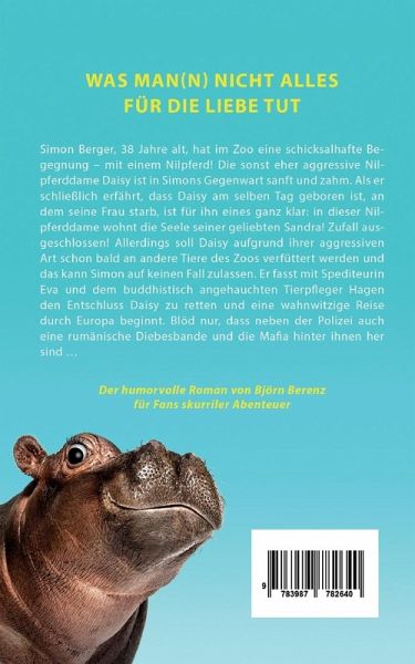 Was man(n) nicht alles für die Liebe tut … Der humorvolle Roman von Björn Berenz für Fans skurriler Abenteuer Simon Berger, 38 Jahre alt, hat im Zoo eine schicksalhafte Begegnung – mit einem Nilpferd! Die sonst eher aggressive Nilpferddame Daisy ist in Simons Gegenwart sanft und zahm. Als er schließlich erfährt, dass Daisy am selben Tag geboren ist, an dem seine Frau starb, ist für ihn eines ganz klar: in dieser Nilpferddame wohnt die Seele seiner geliebten Sandra! Zufall ausgeschlossen! Allerdings soll Daisy aufgrund ihrer aggressiven Art schon bald an andere Tiere des Zoos verfüttert werden und das kann Simon auf keinen Fall zulassen. Er fasst mit Spediteurin Eva und dem buddhistisch angehauchten Tierpfleger Hagen den Entschluss Daisy zu retten und eine wahnwitzige Reise durch Europa beginnt. Blöd nur, dass neben der Polizei auch eine rumänische Diebesbande und die Mafia hinter ihnen her sind … Dies ist eine überarbeitete Neuausgabe des bereits erschienenen Titels Ach du dickes Ding. Erste Leser:innenstimmen „Ich habe mich totgelacht – geniale Komödie für Fans von Jonas Jonasson!" „skurril, tierisch, witzig" „Der flüssige Schreibstil, die absolut sympathischen Charaktere und das lustige Abenteuer machen einfach Spaß zu lesen!" „Humorvoller Roman mit vielen witzigen Überraschungen und Wendungen. Pure Leseunterhaltung!"