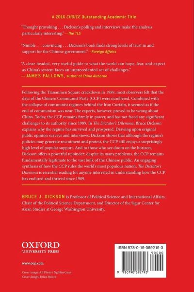 In The Dictator's Dilemma, eminent China scholar Bruce Dickson explains in highly accessible prose why the Communist Party regime has survived and prospered, despite constant predictions of its weakening and demise.