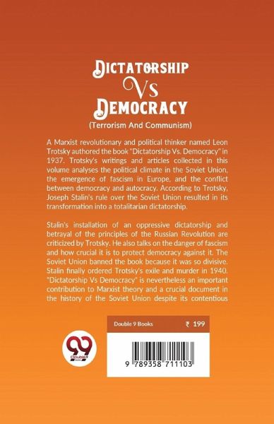 A Marxist revolutionary and political thinker named Leon Trotsky authored the book "Dictatorship Vs. Democracy" in 1937. Trotsky's writings and articles collected in this volume analyses the political climate in the Soviet Union, the emergence of fascism in Europe, and the conflict between democracy and autocracy. According to Trotsky, Joseph Stalin's rule over the Soviet Union resulted in its transformation into a totalitarian dictatorship. Stalin's installation of an oppressive dictatorship and betrayal of the principles of the Russian Revolution are criticized by Trotsky. He also talks on the danger of fascism and how crucial it is to protect democracy against it. The Soviet Union banned the book because it was so divisive. Stalin finally ordered Trotsky's exile and murder in 1940. "Dictatorship Vs Democracy" is nevertheless an important contribution to Marxist theory and a crucial document in the history of the Soviet Union despite its contentious character.
