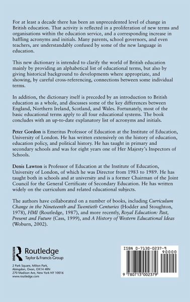 This is an up-to-date guide for teachers and parents, administrators, governors , students and others to help the find their way about the increasingly complex world of education. The main section provides a dictionary that is more than a simple set of definitions: many words in education have been put into some kind of historical context to become fully meaningful. The second part gives some important landmarks from the nineteenth century to the present time, and also provides a list of political heads of education since state education was established. The final section is devoted to a list of acronyms and abbreviations, both of which have been the subject of multiple definitions in recent years.