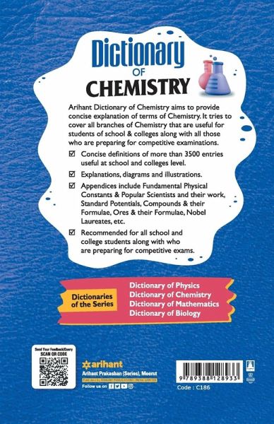 After the second edition in 2015, Arihant has now re-formulated its third edition of the "Dictionary of Chemistry" which covers all branches of chemistry in a clear, jargon-free, and concise manner. Being a useful tool, it makes science a bit simpler for Secondary & Senior Secondary Students and Candidates Appearing for various Competitive Examinations. The present edition incorporates: ¿ Authoritative guide to all aspects of Chemistry ¿ A-Z presentation of Terms, Definitions, Principles, Rules, etc. ¿ Covering more than 3500 entries useful at school and colleges level ¿ Cross-references network are given in some entries ¿ Illustrations, Diagrams, and Explanations enhance understanding of terms ¿ Appendices provide Basic Formulae, Conversion Factors, Nobel Laureates in Chemistry, etc. ¿ All Terms of NCERT are also covered ¿ Cater needs of School & College Students, including the candidates for competitive exams. TABLE OF CONTENT: A-Z, Appendices