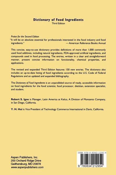 The Dictionary of Food Ingredients is a unique, easy-to-use source of infor mation on over 1,000 food ingredients. Like the previous editions, the new and updated Third Edition provides clear and concise information on currently used additives, including natural ingredients, FDA-approved artificial ingredients, and compounds used in food processing. The dictionary entries, organized in alphabetical order, include information on ingredient functions, chemical properties, and uses in food products. The updated and revised Third Edition contains approximately 1 SO new entries, and includes an updated and expanded bibliography. It also lists food ingredients ac cording to U. S. federal regulatory status. Users of the two previous editions have commented favorably on the dictionary's straightforward and clearly-written definitions, and we have endeavored to maintain that standard in this new edition. We trust it will continue to be a valuable reference for the food scientist, food processor, food product developer, nutritionist, extension specialist, and student. R S. Igoe Y. H. Hui vii Ingredients A Acacia See Arabic. Acesulfame-K A non-nutritive sweetener, also termed acesulfame potas sium. It is a white, crystalline product that is 200 times sweeter than sucrose. It is not metabolized in the body. It is relatively stable as a powder and in liquids and solids which may be heated. Acesulfame-K is approved for use in dry food products. Acesulfame Potassium See Acesulfame-K.
