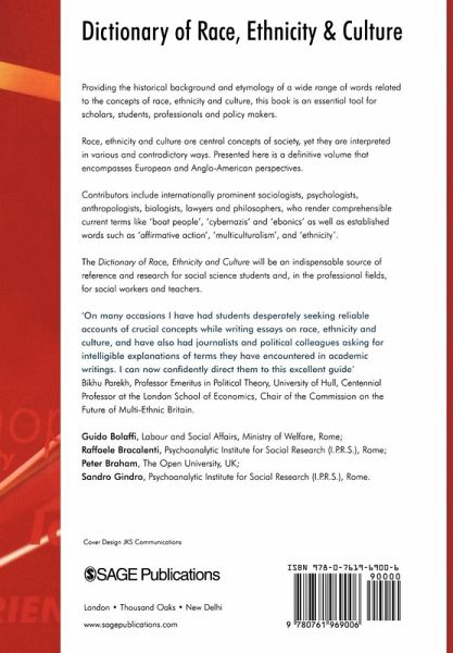 The Dictionary of Race, Ethnicity and Culture provides the historical background and etymology of a wide number of words related to the concepts of race, ethnicity and culture and looks at them from a broadly multicultural perspective.