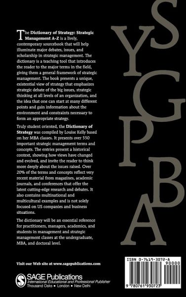 This dictionary of terms and concepts is a lively, contemporary source book whose intent is to help illuminate major debates, issues, and scholarship in strategic management. The dictionary presents over 550 terms, all compiled through the author's years of teaching MBA courses, presents strategy in a historical context showing how views have changed and evolved, and inviting the reader to think more deeply about the issues raised. It offers a flexible framework for understanding terms and topics in a broader strategic management perspective. The terms and concepts reflect very recent material from magazines, academic journals, and conferences to bring the reader the latest cutting edge research and debates.