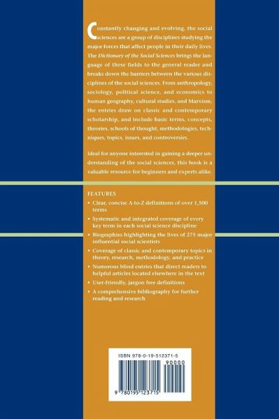 This dictionary will be a one-volume work comprising over 1,700 entries ranging from fifty to five hundred words. The intended audience for the work are students and scholars who need ready access to defined terms in a social science outside of their immediate areas of expertise. For instance, an anthropologist may consult the dictionary regarding a definition in economics and visa versa.