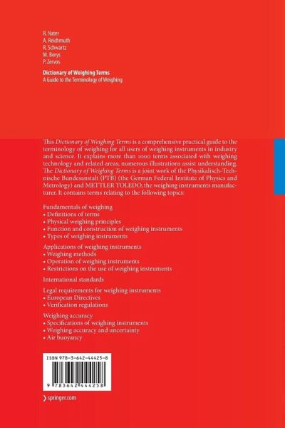 "Written by scientists from Germany's national metrology institute, the Physikalisch-Technische Bundesanstalt, and employees of Mettler-Toledo International, this dictionary features definitions for more than 1,000 terms related to weight and mass, along with hundreds of full-color photographs, illustrations, and diagrams. It fills a useful niche, as no dictionaries of this type have been published recently. ... In this volume, most definitions are clear, concise, and easily understandable by nonscientists. ... References are included ... . Summing Up: Recommended. Graduate students, researchers/faculty, and professionals/practitioners." (J. A. Murphy, Choice, Vol. 47 (11), July, 2010)