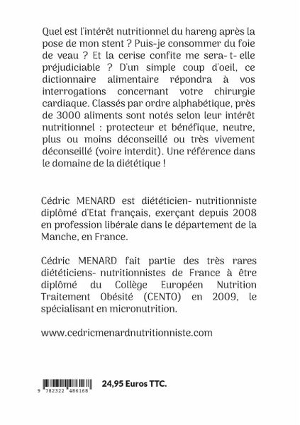 Quel est l'intérêt nutritionnel du hareng après la pose de mon stent ? Puis-je consommer du foie de veau ? Et la cerise confite me sera-t-elle préjudiciable ? D'un simple coup d'oeil, ce dictionnaire alimentaire répondra à vos interrogations concernant votre chirurgie cardiaque. Classés par ordre alphabétique, près de 3000 aliments sont notés selon leur intérêt nutritionnel : protecteur et bénéfique, neutre, plus ou moins déconseillé ou très vivement déconseillé (voire interdit). Une référence dans le domaine de la diététique !