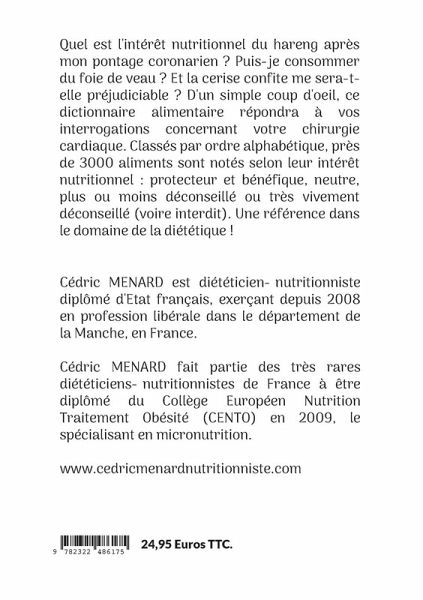 Quel est l'intérêt nutritionnel du hareng après mon pontage coronarien ? Puis-je consommer du foie de veau ? Et la cerise confite me sera-t-elle préjudiciable ? D'un simple coup d'oeil, ce dictionnaire alimentaire répondra à vos interrogations concernant votre chirurgie cardiaque. Classés par ordre alphabétique, près de 3000 aliments sont notés selon leur intérêt nutritionnel : protecteur et bénéfique, neutre, plus ou moins déconseillé ou très vivement déconseillé (voire interdit). Une référence dans le domaine de la diététique !